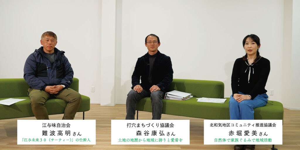 3つのエリアで、まちづくりに取り組んでいる3人からお話を伺いました。