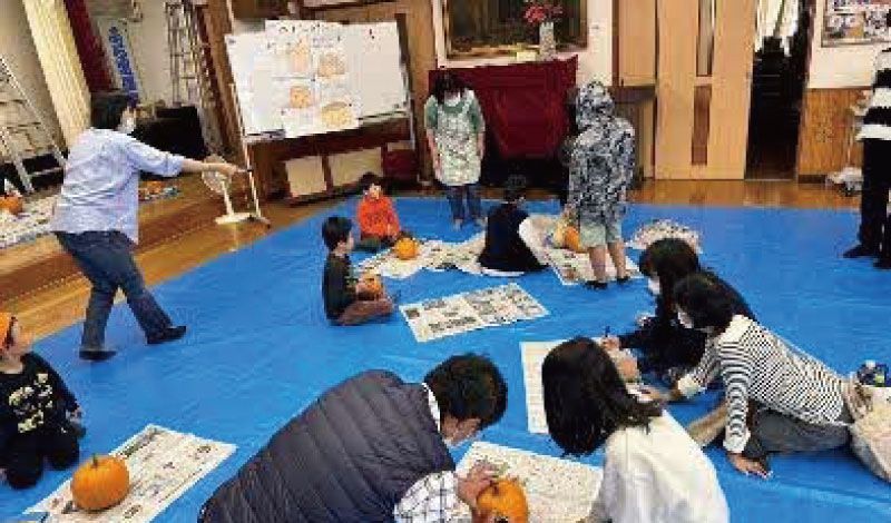 毎年10月末に開催している「ランタン DE ハロウィン」。地元園児がかぼちゃを作るところからスタート。当日は仮装、ランタン・イルミネーションで秋を彩色。