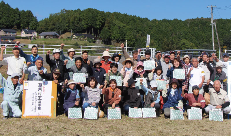 『草刈り王選手権』地域課題1位の草刈り問題を住民一丸となって、楽しみながら解決していく取り組み。競技性を交えつつ、正しく、安全安心な草刈りを実施。