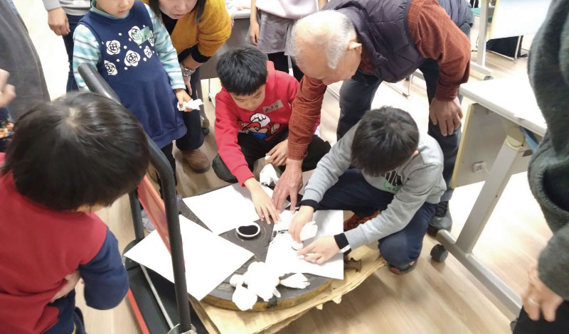 『かめカメ大作戦』町の魅力をこどもたちに知ってもらうため、マンホールの「亀」の拓本体験を企画。模様を写し取る体験がとても新鮮で、こどもたちは興味津々。