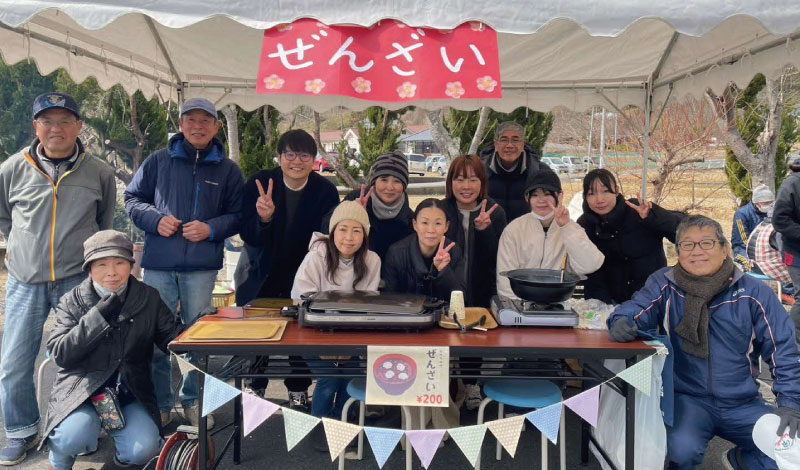 “飯岡みんなの会”が企画して「飯(YOU)cafe」を開催。美味しいぜんざい、昔遊び、バザーなど3世代が一緒に楽しめるイベントに。