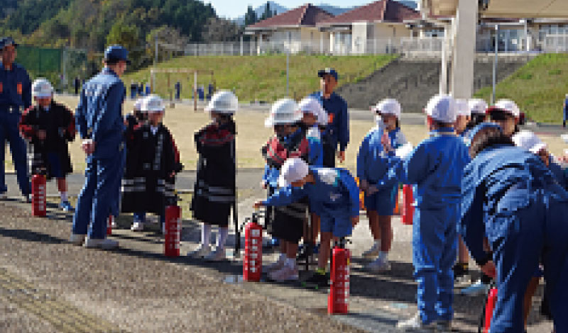 こどもたちへ消防団活動を紹介することで、防火・防災意識の向上を図る取り組みを行っています。